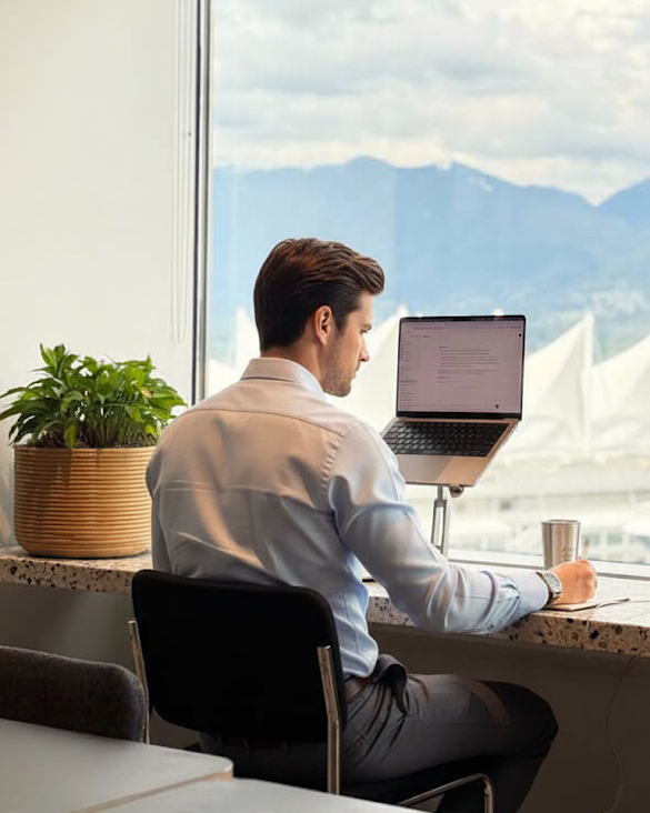 Slouching doesn't just damage your body. It restricts oxygen reaching your brain, causing brain fog. Model-X raises your screen to your eye-level. Letting you focus easier in comfort.